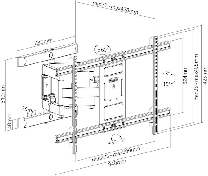 Uchwyty cechujące się solidnym wykonaniem i długoletnią gwarancją (seria BASIC 5-letnią, seria PRO 10-letnią). Zapewniają solidne mocowanie telewizora każdego typu na ścianie, idealnie dopasowują się do Twojego wystroju wnętrza. Uchwyty Goobay są regulowane w niemal każdej możliwej płaszczyźnie: pochył góra/dół, skręt lewo/prawo, odległośc od ściany. W galerii produktu umieszczamy rysunek z wymiarami uchwytu. Poniżej podajemy dokładną specyfikację techniczną.