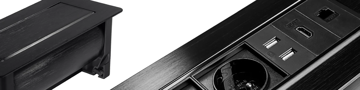 Czy poszukujesz idealnego rozwiązania, które połączy elegancję i funkcjonalność w Twoim biurze, salonie sprzedaży, sali konferencyjnej lub domu? Gniazdo blatowe zasuwane Spacetronik to wszechstronny produkt, który sprosta każdemu wyzwaniu. Dzięki nowoczesnemu designowi i różnorodnym portom, takim jak USB, HDMI i Ethernet, oraz możliwości szybkiego ładowania indukcyjnego, nasze gniazda meblowe zapewnią wygodę i estetykę w każdej przestrzeni pracy.