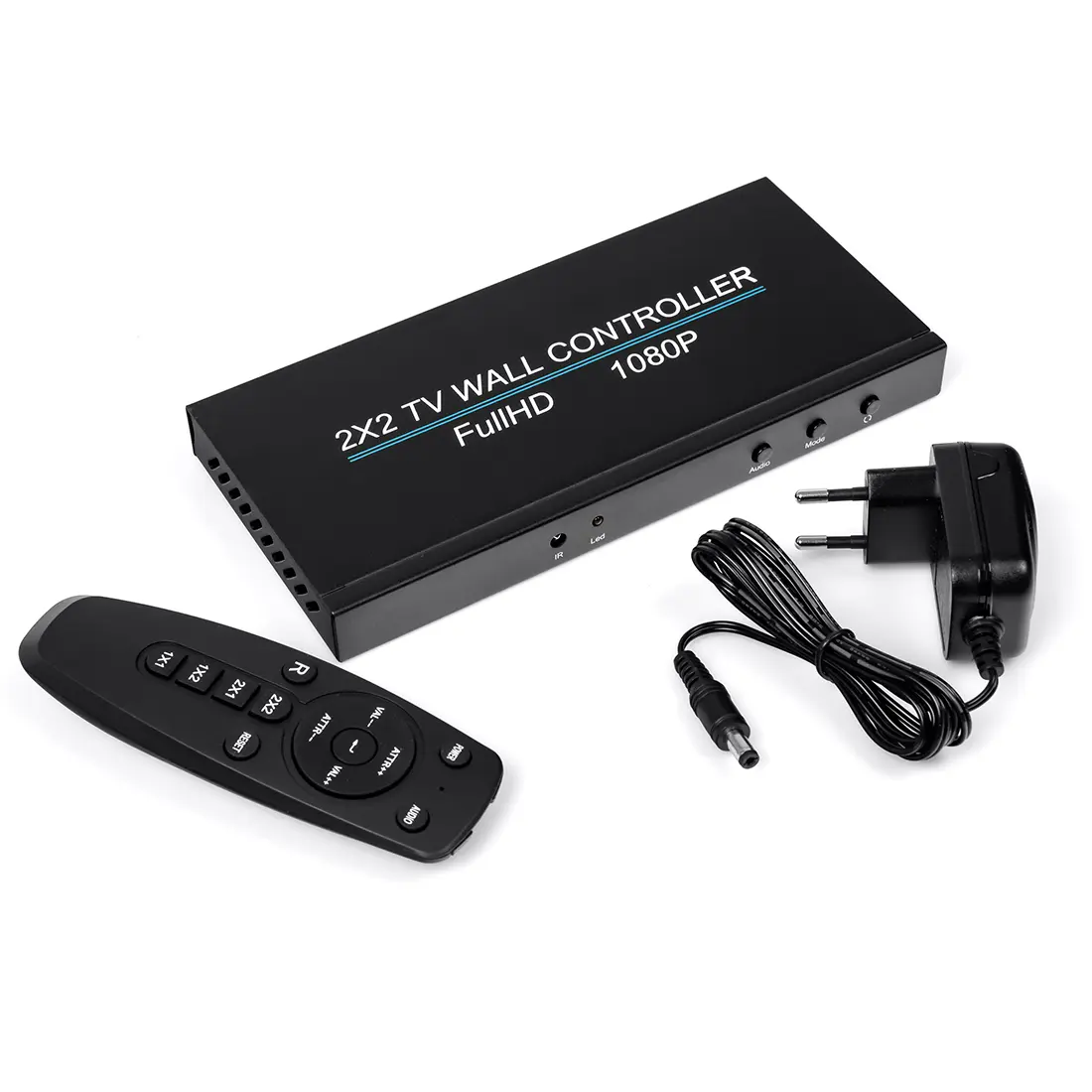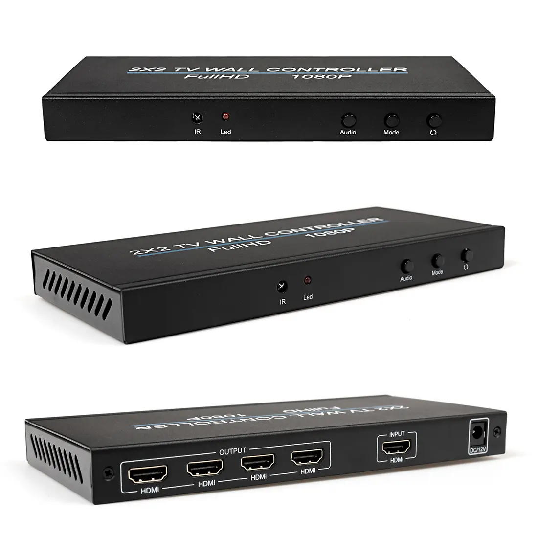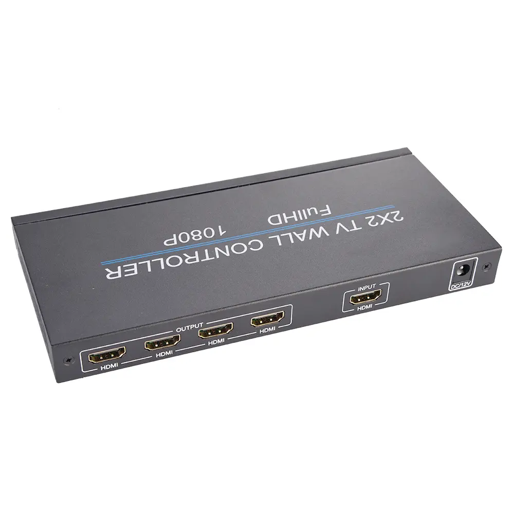 Kontroler ścienny wideo 2x2 obsługuje 1-drożne wejście HDMI i 4 wyjścia HDMI, główną funkcją jest podzielenie całego sygnału HDMI na 4 bloki i przypisanie do 4 wyświetlaczy wideo (takich jak projektory, telewizory itp.) Port HDMI obsługuje wejście o rozdzielczości FHD i wyświetla taki sam obraz wideo na czterech wyświetlaczach końcowych.