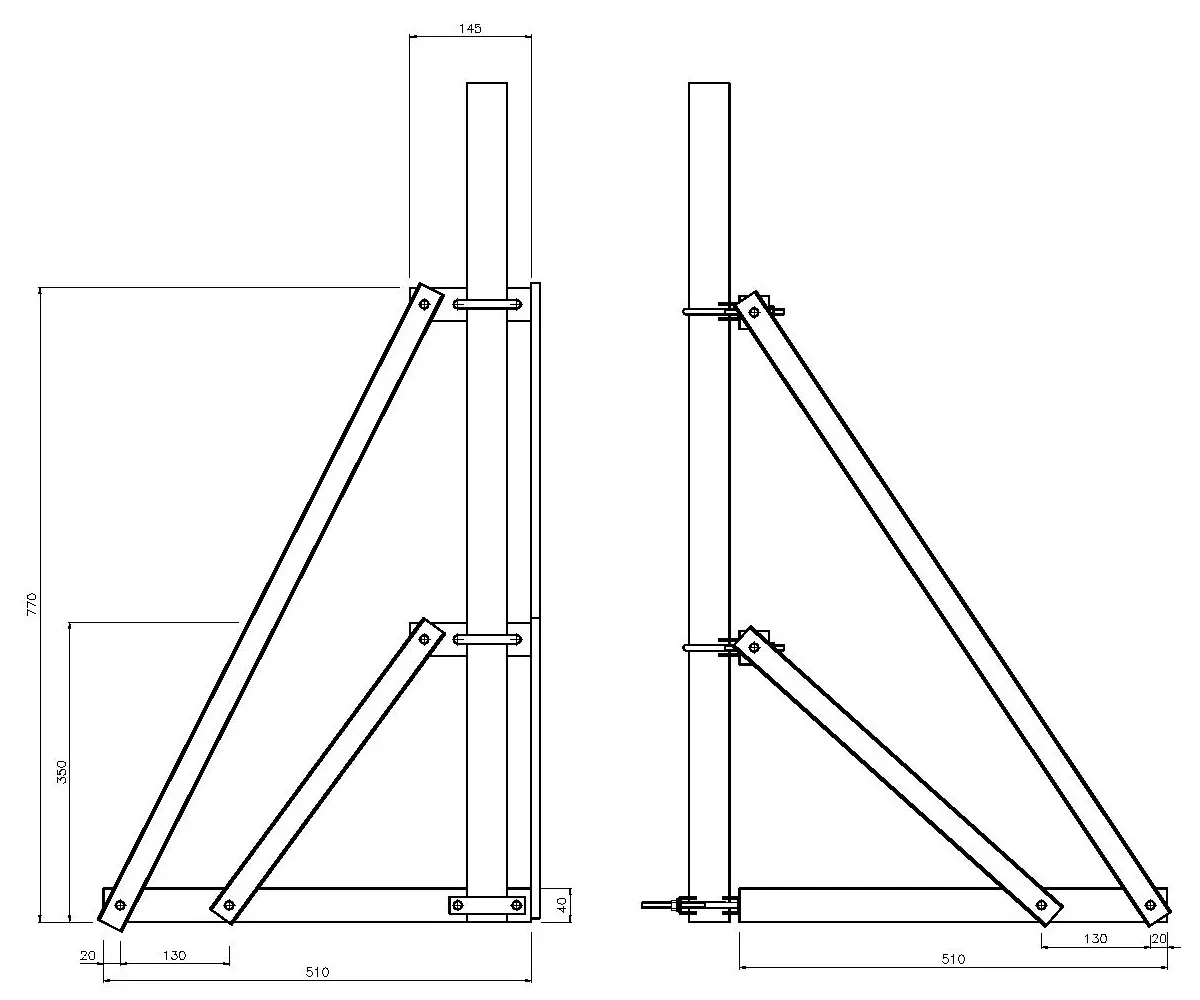 Stojak balkonowy balastowy bezinwazyjny stosowany jest w przypadku braku możliwości kotwienia konstrukcji do podłoża (np. dachu, chodnika, balkonu, tarasu). Stabilna konstrukcja dzięki wykorzystaniu obciążników w postaci płyt betonowych. Uchwyt wykonany ze stali ocynkowanej ogniowo - w pełni zabezpieczony przed korozją. Podstawa na 1 płytę betonową (500x500mm) wyposażona w nóżki i dodatkowe wsporniki masztu.