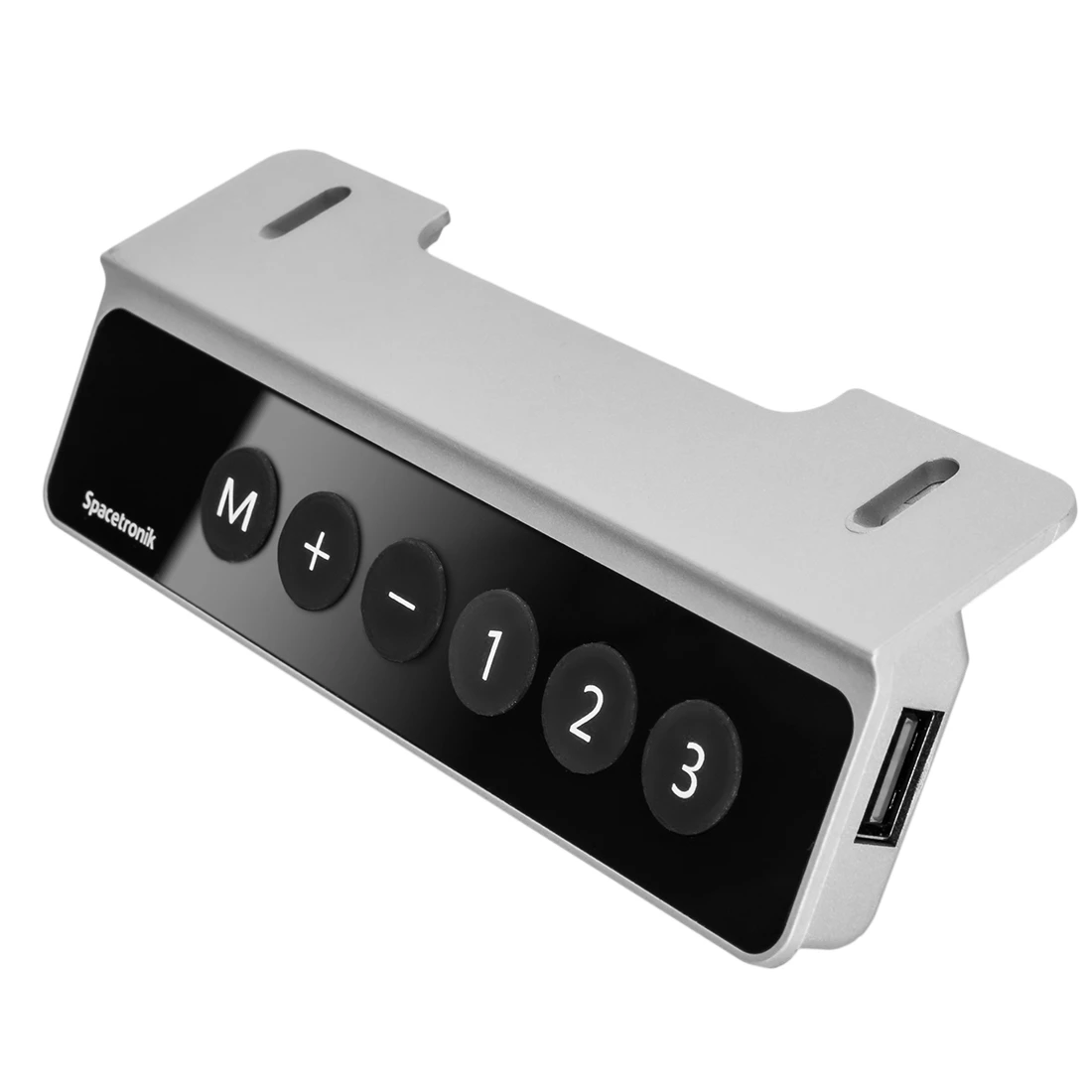 Przyciski góra/dół pozwalają na łatwe dostosowanie idealnej wysokości. Dzięki czterem programowalnym przyciskom możesz zapisać swoje ulubione pozycje i wrócić do każdej z nich poprzez jedno kliknięcie, np. wtedy gdy chcesz pracować na stojąco. Aktualna wysokość ergonomicznego biurka jest pokazywana na wyświetlaczu. Za pomocą kombinacji przycisków możemy zablokować kontroler np. przed niepożądanym użyciem przez dzieci.