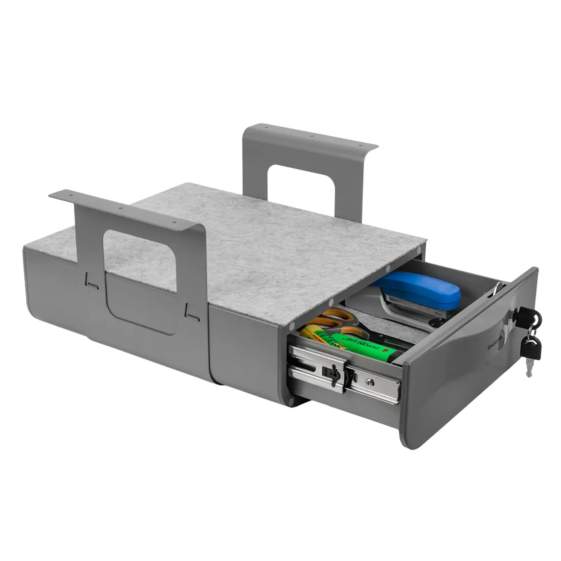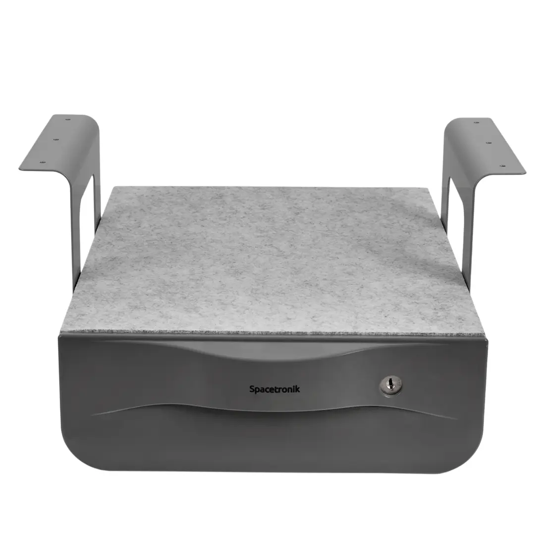 Dodaj dodatkowe miejsce do przechowywania przy swoim biurku dzięki zamykanej szufladzie podblatowej Spacetronik. Stalowa konstrukcja sprawia, że jest solidna i stabilna. Od teraz Twoje wartościowe przedmioty będą bezpieczne, gdyż szuflada podbiurkowa jest zamykana na klucz i bez trudu pomieści nawet notebooka. Nowoczesny, ponadczasowy design powouje, że szuflada wkomponuje się w każde wnętrze i będzie współgrać z Twoim biurkiem. Wymaga minimalnego montażu.