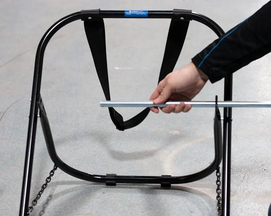 - Solidna stalowa konstrukcja z łańcuchami na dwóch nogach dla większej stabilności i dłuższej żywotności
