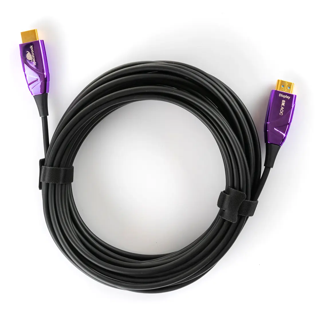 Spacetronik SH-OX050 to kabel optyczny pozwalający przesyłać sygnał na większą odległość niż standardowe kable HDMI z ekstremalną prędkością transmisji danych do 48 Gb/s. Tak potężna przepustowość zapewnia ostry, krystaliczny obraz o rozdzielczości 8K/60Hz & 4K/120Hz, który z pewnością zadowoli wymagającego kinomaniaka, czy też gracza komputerowego. Przewód światłowodowy Spacetronik zapewnia zarówno najnowocześniejszą wydajność, jak i wyjątkową niezawodność. Do produkcji wykorzystano najwyższej klasy komponenty, materiały i rozwiązania konstrukcyjne. Tradycyjne miedziane kable HDMI mogą transmitować sygnał z prędkością 18 Gb/s, ale jedynie na krótkich, kilkumetrowych odcinkach. By zapewnić transmisję o prędkości 48 Gb/s na dłuższych odległościach (np. w instalacjach kina domowego) konieczne jest zastosowanie technologii hybrydowej. SH-OX050 obsługuje wszystkie funkcje i możliwości w standardzie HDMI 2.1, w tym HDR10 +, HDCP2.3, eARC i wiele innych. Kable optyczne Spacetronik UHS AOC HDMI 2.1 są właściwym wyborem do podłączenia najnowszych urządzeń 8K (np. do Playstation 5 (PS5) oraz XBOX Series X i S, najnowszych kart graficznych RTX NVidia do monitorów czy telewizorów 8K). Dzięki obsłudze technologii eARC świetnie sprawdzą się w instalacjach kina domowego, współpracując z urządzeniami HDMI 2.1 najnowszej generacji.