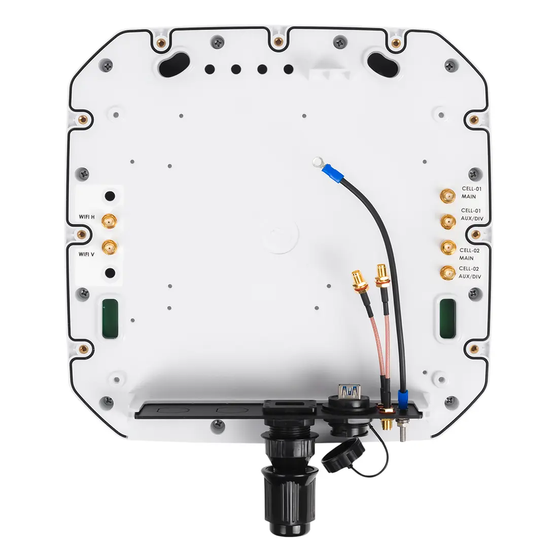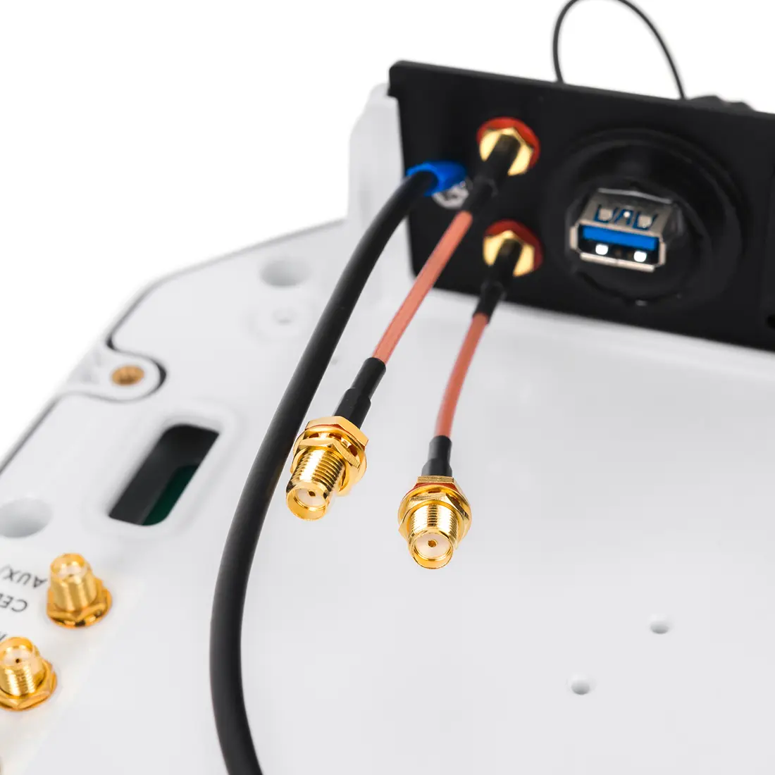 - 1 x zewnętrzne porty USB, 1 x port Ethernet i 2 x zewnętrzne połączenia SMA dla dodatkowych anten