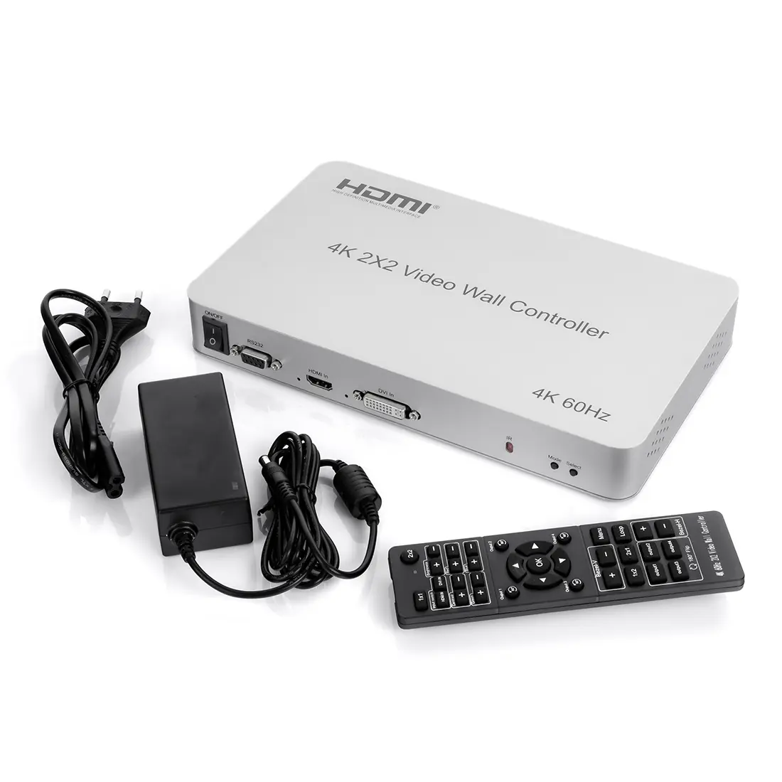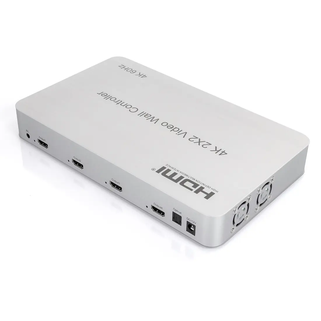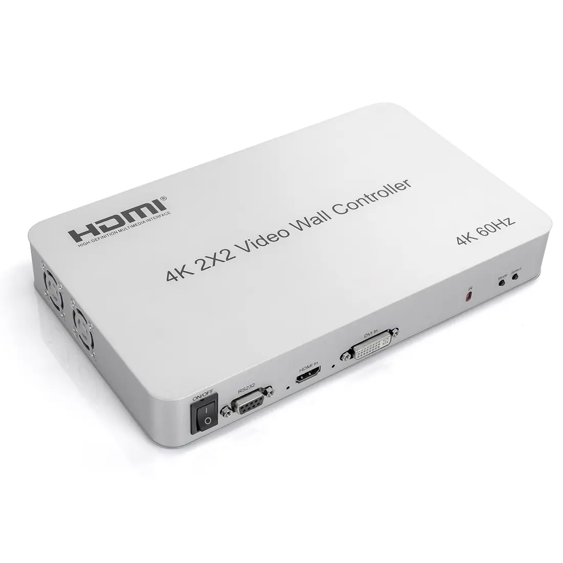 Kontroler ściany wideo 4K 60Hz 2x2 obsługujący 1wejście HDMI lub DVI i 4 wyjścia HDMI. Główną funkcją kontrolera ścian jest podzielenie pełnego obrazu HDMI lub DVI HD na 4 bloki i przypisanie do 4 jednostek wideo (takich jak tylna jednostka projekcyjna , Telewizor LCD itp.). Dzięki urządzeniu można stworzyć duży, dynamiczny obraz o wysokiej jakości.