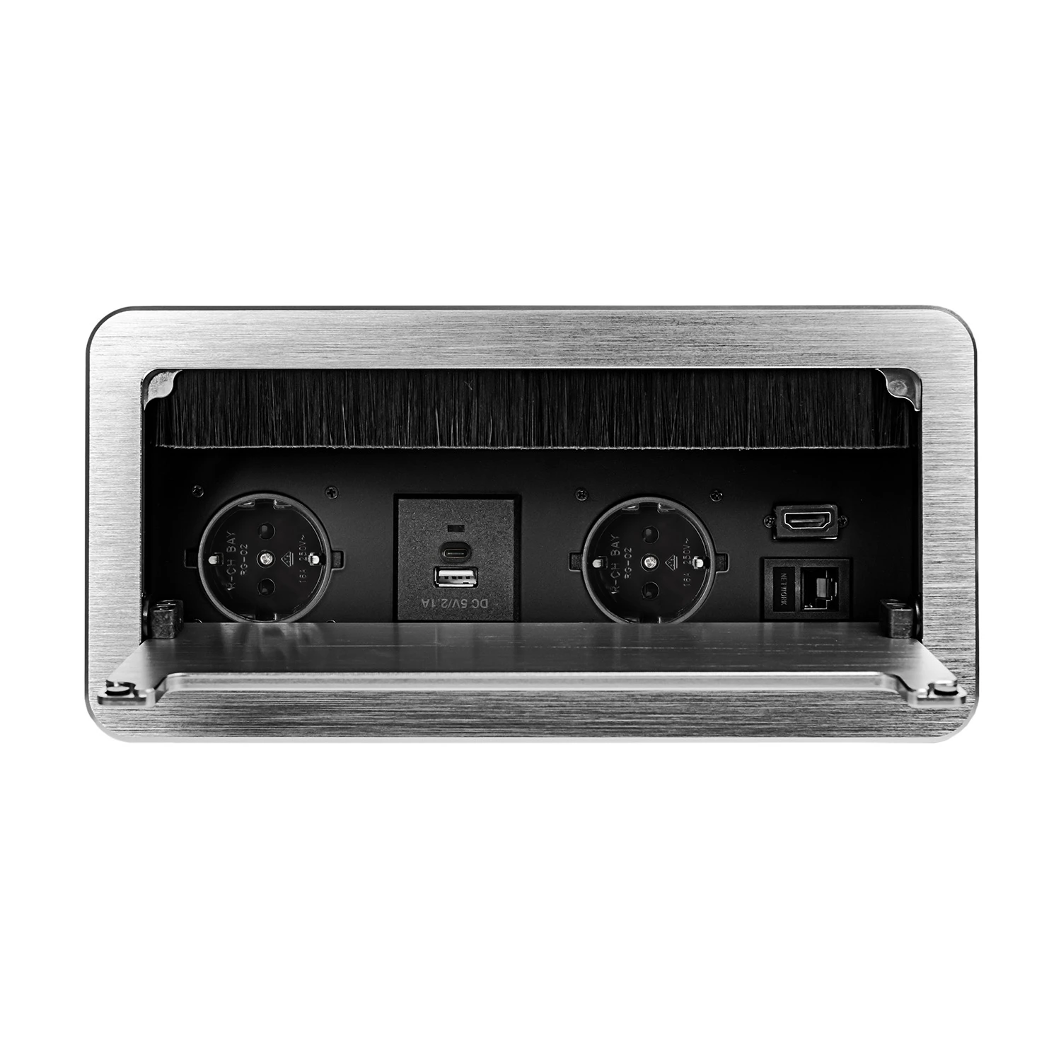 Multifunkcyjny madiaport to idealne rozwiązanie do nowoczesnych przestrzeni roboczych i domowych. Gniazdo HDMI umożliwia szybkie podłączenie monitorów i projektorów. Gniazdo RJ45 zapewnia stabilne połączenie z siecią internetową, kluczowe dla pracy zdalnej i wideokonferencji. Dedykowany port USB do ładowania pozwala na wygodne ładowanie urządzeń mobilnych.