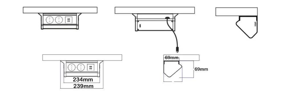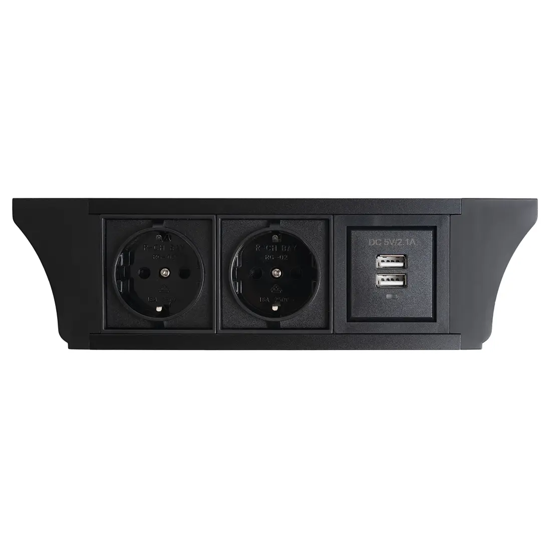 Gniazdo meblowe Spacetronik ERGOLINE SPS-U24B V2 to nowoczesne rozwiązanie, które znajduje zastosowanie w sklepach, salonach sprzedaży, salach konferencyjnych, biurach, a także w domu. Wykonany z aluminium i wysokiej jakości komponentów. Produkt jest przeznaczony do montażu wewnątrz pomieszczeń w biurkach, blatach i stołach, zarówno w pozycji pionowej jak i poziomej, zapewniając dostęp do gniazd. Mediaport został wyposażony w 2 gniazda 110-250 V (typ Schuko) oraz podwójną ładowarkę USB.