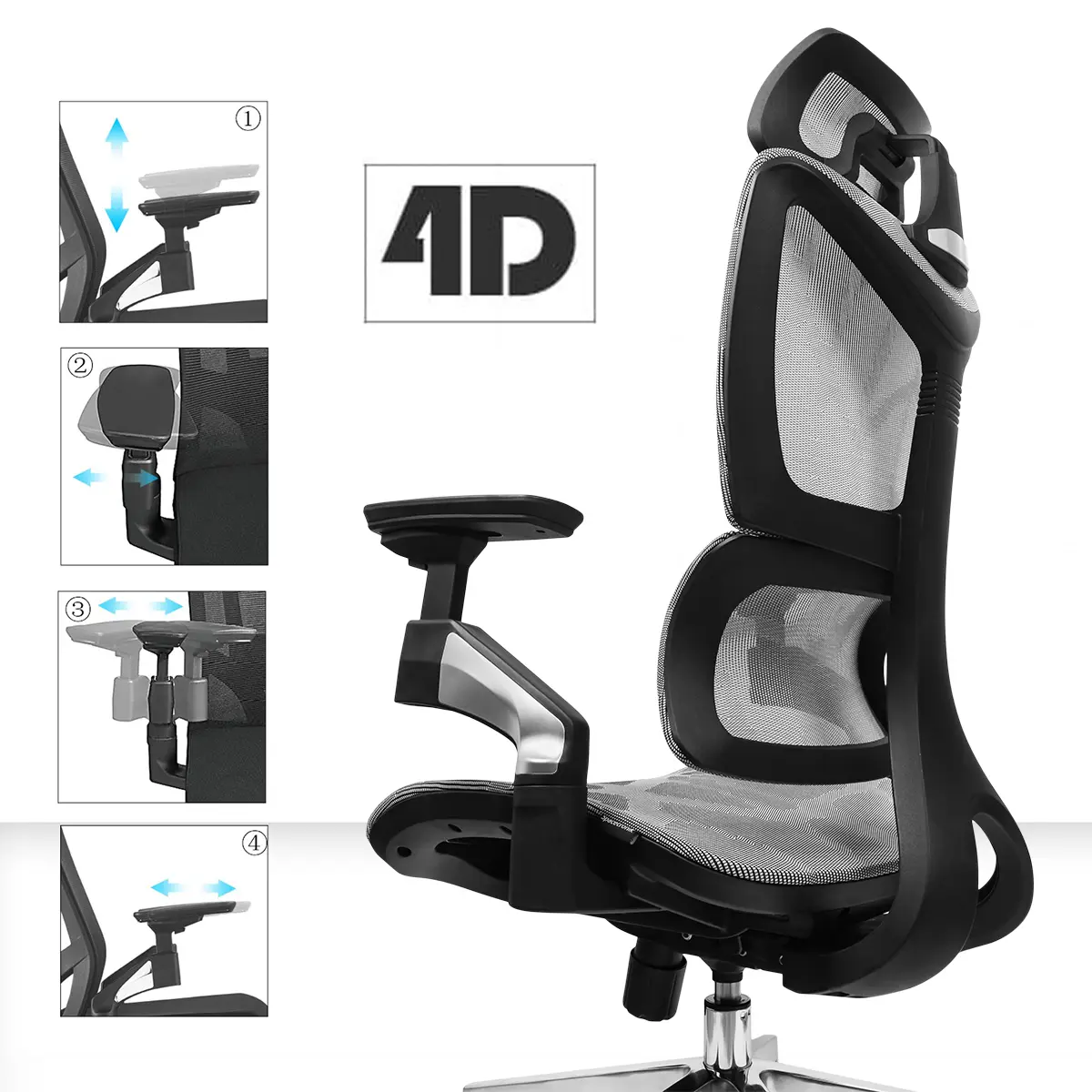 - Regulacja podłokietnika 4D (wysokość, przód & tył, obrotowa podstawa podłokietnika w zakresie około 60 st., lewo & prawo górna podpórka)