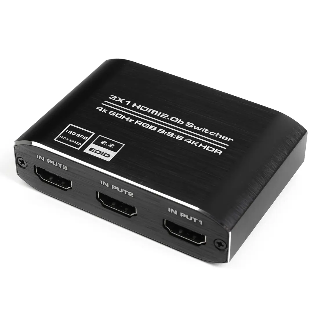 Sumator HDMI 3x1 pozwala maksymalnie zsumować 3 źródła HDMI do jednego wyjścia HDMI obsługiwanego za pomocą pilota lub z przycisku na urządzeniu. Przełącznik HDMI obsługuje formaty wideo 4K 60Hz.