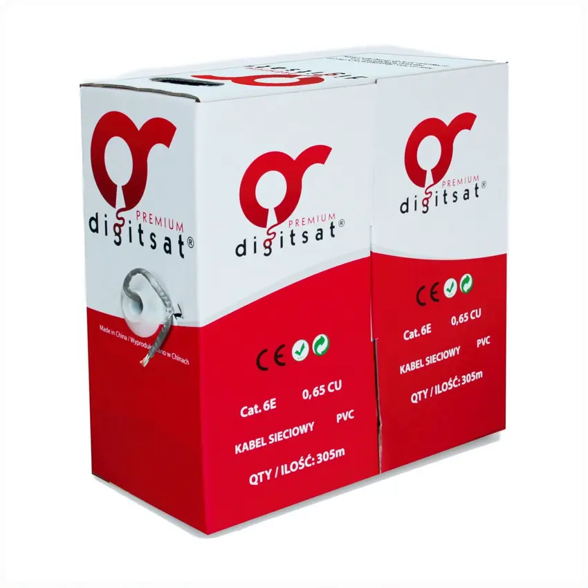 Skrętka komputerowa F/UTP kategorii 6 DIGITSAT do zastosowań zewnętrznych, żyła miedziana (drut) 0,65 mm izolowana skręcona w pary, powłoka kabla PVC w kolorze szarym, oznaczenie metrowe, opakowanie 305 m.
