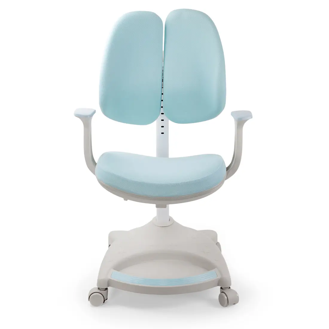 Krzesło w kolorze niebieskim świetnie wpasuje się w zestaw, który proponujemy. Estetyczny wygląd to nie wszystko - największą zaletą jest ergonomiczny kształt specjalnie opracowanego dwuczęściowego oparcia i siedziska. Fotel został zaprojektowany tak, aby dbał o zdrowie kręgosłupa pociechy podczas nauki przy biurku. Dodatkowo mechanizm blokady kółek zabezpiecza przed przypadkowym przemieszczaniem się krzesła, co pozwoli bardziej skupić się na nauce i zabawie bez zbędnego rozpraszania uwagi.