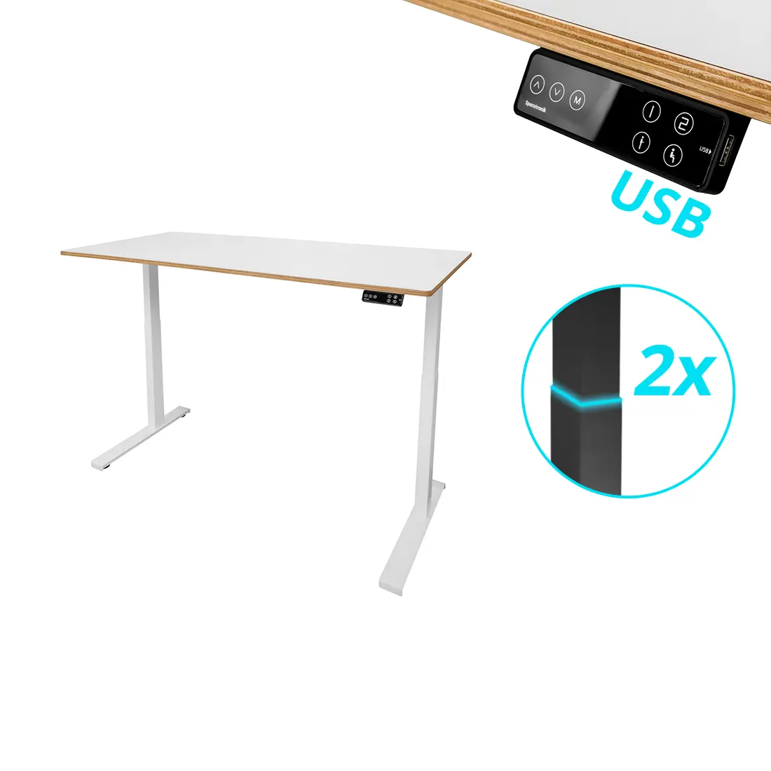 Stelaż biurkowy Spacetronik SPE-252W został wyposażony w kontroler z udogodnieniami. Regulacja wysokości blatu jest bardzo prosta i odbywa się za pomocą przycisków "góra" i "dół". Na wyświetlaczu LED będziemy mogli zobaczyć na jakiej wysokości aktualnie znajduje się blat. Kontroler ma funkcję zapamiętywania określonych wysokości, dzięki czemu możemy korzystać z gotowych ustawień dla różnych użytkowników. Dodatkowo możemy zabezpieczyć kontroler przed przypadkową zmianą wysokości. Jest to szczególnie przydatna funkcja, kiedy mamy w domu dzieci, które lubią pobawić się przyciskami. Dodatkowo został wbudowany szybki port USB, dzięki któremu możemy np. naładować telefon.