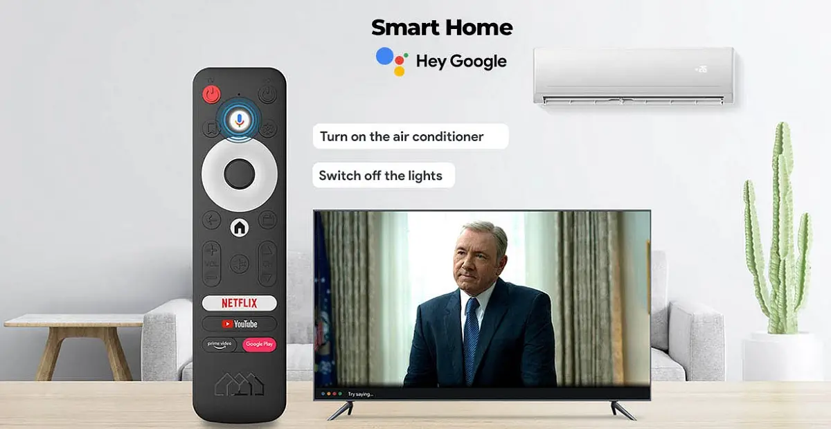 Bardzo wygodny pilot w minimalistycznym stylu, ale ze wszystkim czego potrzebujesz. Szybko go opanujesz, a nawigacja w menu będzie dla Ciebie bezproblemowa. Na elementach sterujących znajdziesz przyciski szybkiego dostępu do aplikacji YouTube lub jednej z najpopularniejszych usług streamingowych Netflix. Pilot służy również jako mikrofon dla Google Assistant.