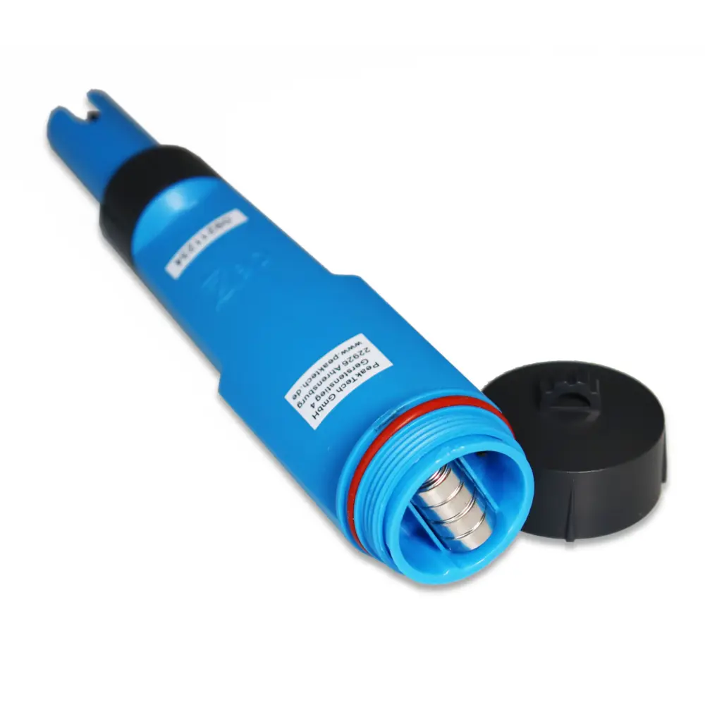 Miernik pH 2w1 z obsługą jedną ręką mierzy wartość pH cieczy poprzez galwaniczną różnicę napięć między cieczami kwaśnymi, neutralnymi i zasadowymi. Dodatkowo mierzona i wyświetlana jest temperatura cieczy z jednoczesnym wyświetlaniem obu mierzonych wartości na wyświetlaczu LCD ze stałym podświetleniem. Do wytrzymałej i wodoodpornej obudowy przymocowana jest łatwo wymienialna głowica czujnika, która zawiera czujnik do pomiaru pH i pomiaru temperatury w °C lub °F.