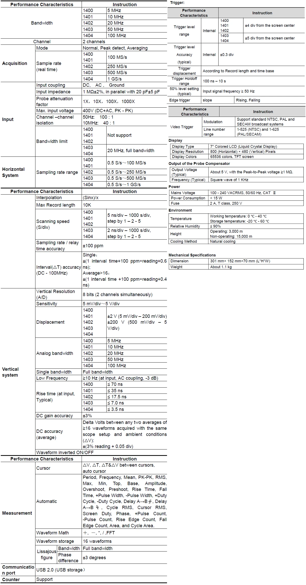 - Model 1400: od 0,5 S/s do 100 MS/s