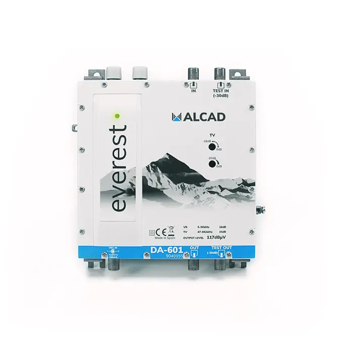 Szerokopasmowy wzmacniacz dystrybucyjny do telewizji naziemnej (117 dBuV). Posiada regulację wzmocnienia i zmienną regulację nachylenia. Wzmacnia ścieżkę powrotną od 5 do 30 MHz. Zasilany zewnętrznym zasilaczem model FF-200 (dołączony do wzmacniacza). Punkty testowe wejścia i wyjścia umożliwiają sprawdzenie i regulację instalacji bez konieczności odłączania sygnału TV.