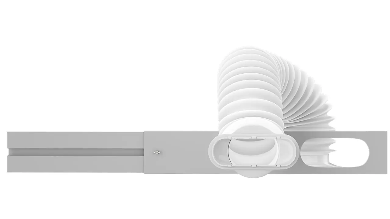 Nie musisz wiercić żadnych otworów w ścianach! W zestawie z klimatyzatorem dostarczany jest 2-metrowy wąż odprowadzający powietrzne wraz z adapterem/przelotką do okien uchylnych i przesuwnych.