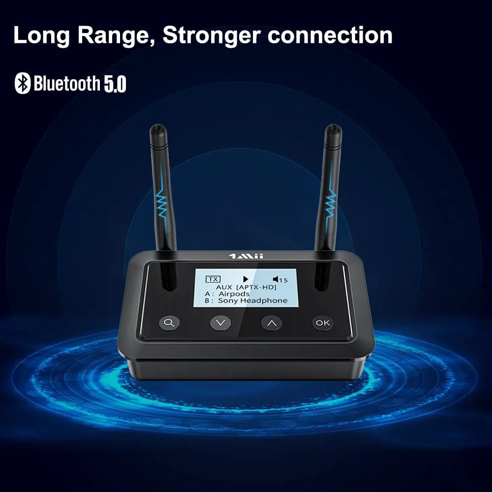 - Super łatwe parowanie - Adapter Bluetooth 1Mii B03+ posiada wbudowany ekran. Przejrzysty i czytelny podczas pracy, możesz łatwo wybrać odpowiednie słuchawki Bluetooth, głośniki lub telefony komórkowe. Istnieje również możliwość regulacji głośności.