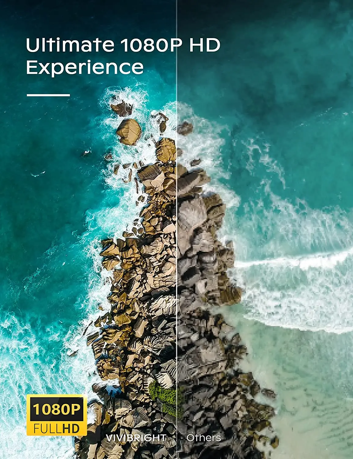 Seria D5000A jest idealnym rozwiązaniem dla osób, które poszukują wygodnego sposobu do odtwarzania multimediów. Produkt charakteryzuje się najwyższą rozdzielczością w swojej klasie - Full HD 1920x1080px, która gwarantuje naturalny i ostry obraz. Projektor wyróżnia się wysoką jasnością obrazu na poziomie 8800 LUX / 2800 ansi lms. Komfortowy odbiór wybranych multimediów mamy w zaciemnionych pokojach i w nocy w plenerze. Wbudowany głośnik pozwala zaminić salon w małą salę kinową. Vivibright D5000A to kompaktowych wymiarów projektor, który zaspokoi potrzeby wielu użytkowników. Do zestawu dołączona jest poręczna torba na urządzenie i ekran do wyświetlania o rozmiarze 100 cali, co tworzy kompleksowe rozwiązanie do wyświetlania filmów bez dokupowania niezbędnych akcesoriów - u nas wszystko masz w zestawie, w atrakcyjnej cenie.