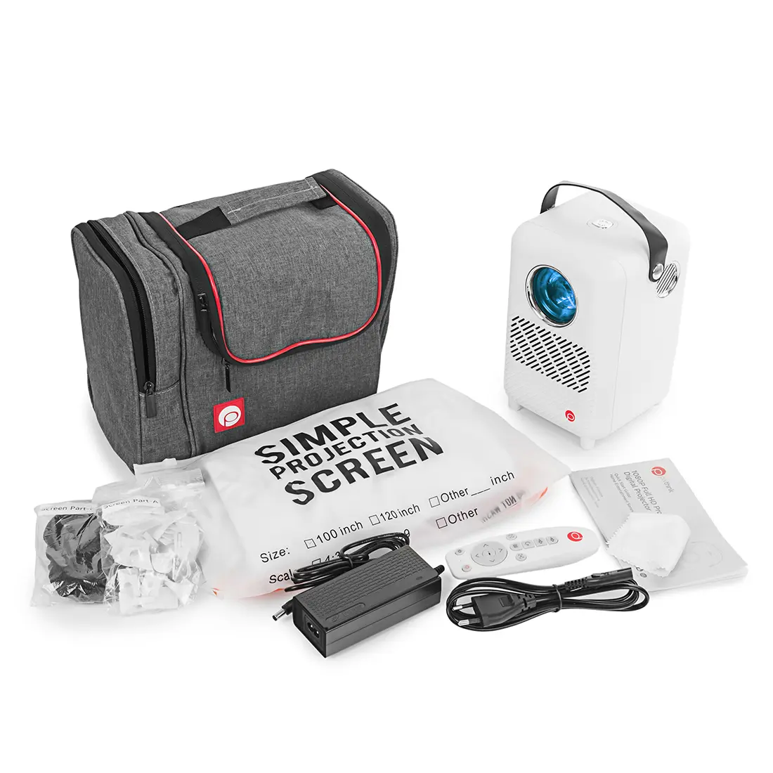 Bezprzewodowy projektor LED Vivibright M1 Screen Mirroring z torbą na projektor i ekranem - model dla każdego