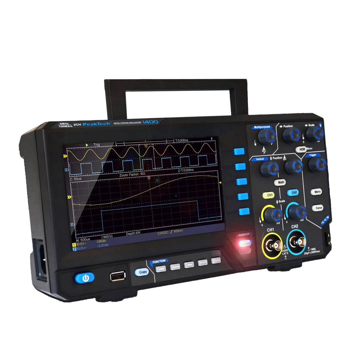 oscyloskop cyfrowy, pasmo analogowe 100 MHz, precyzja pomiarów, narzędzie dla elektroników, badanie sygnałów, urządzenie testowe, PeakTech P1404, analiza sygnałów, sprzęt pomiarowy, oscyloskop 100MHz