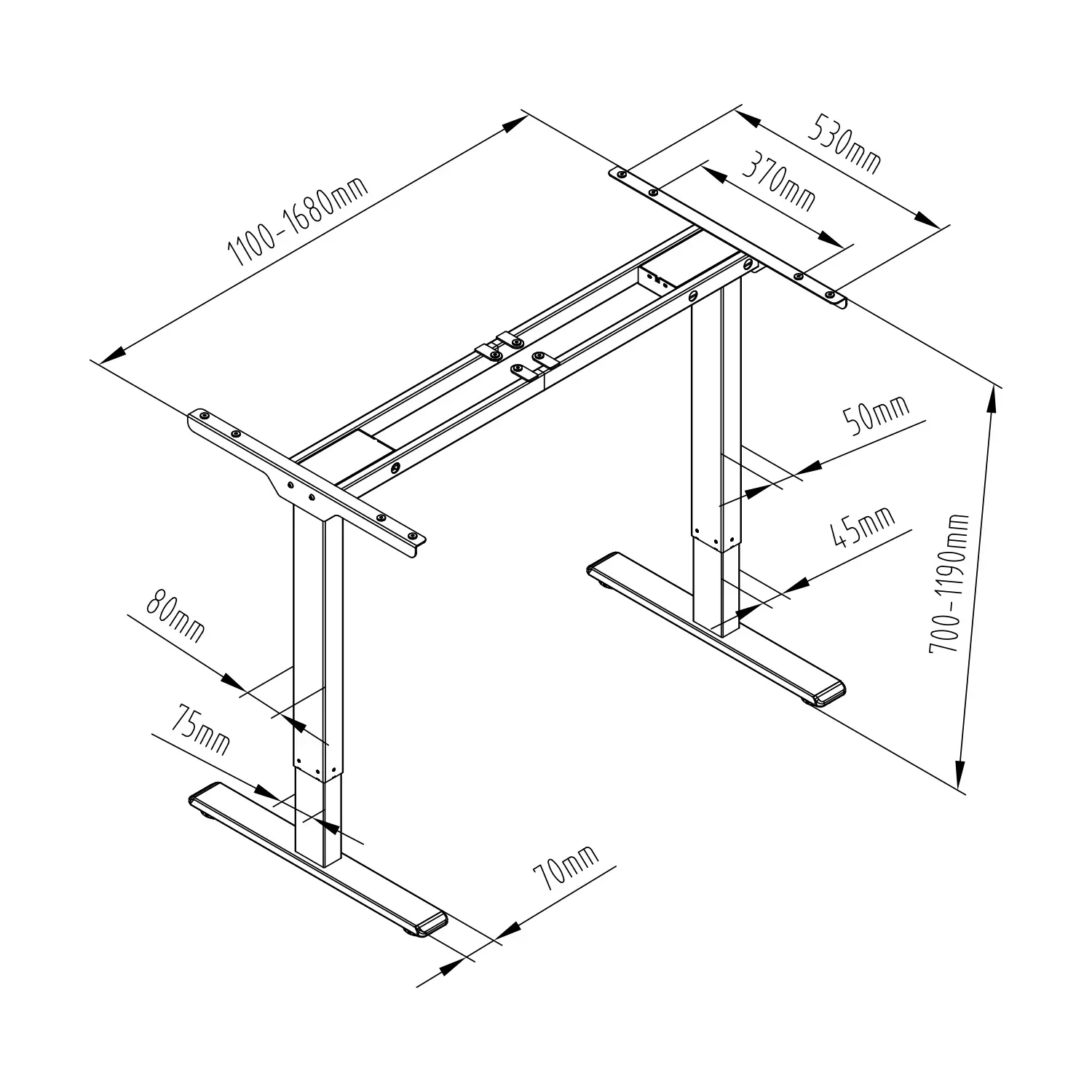 Odpowiednio zaprojektowana rama stelaża biurka elektrycznego gwarantuje stabilność nawet na najwyższej wysokości. Regulowane biurko umożliwia tzw. pracę hybrydową, czyli naprzemiennie stojąc lub siedząc. Regulacja wysokości to idealne rozwiązanie, gdy przy jednym stanowisku pracuje kilka osób - dostosuj wysokość blatu do wzrostu każdego z użytkowników w zakresie od 70 do 119 cm. Biurko z regulacją wysokości to mebel, który dostosuje się do Ciebie!