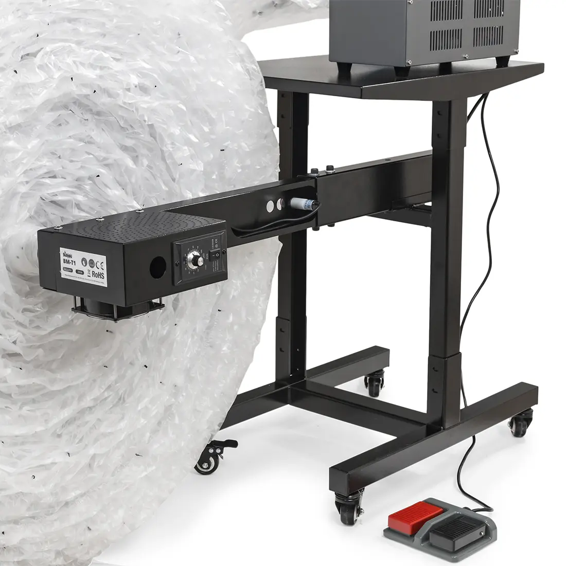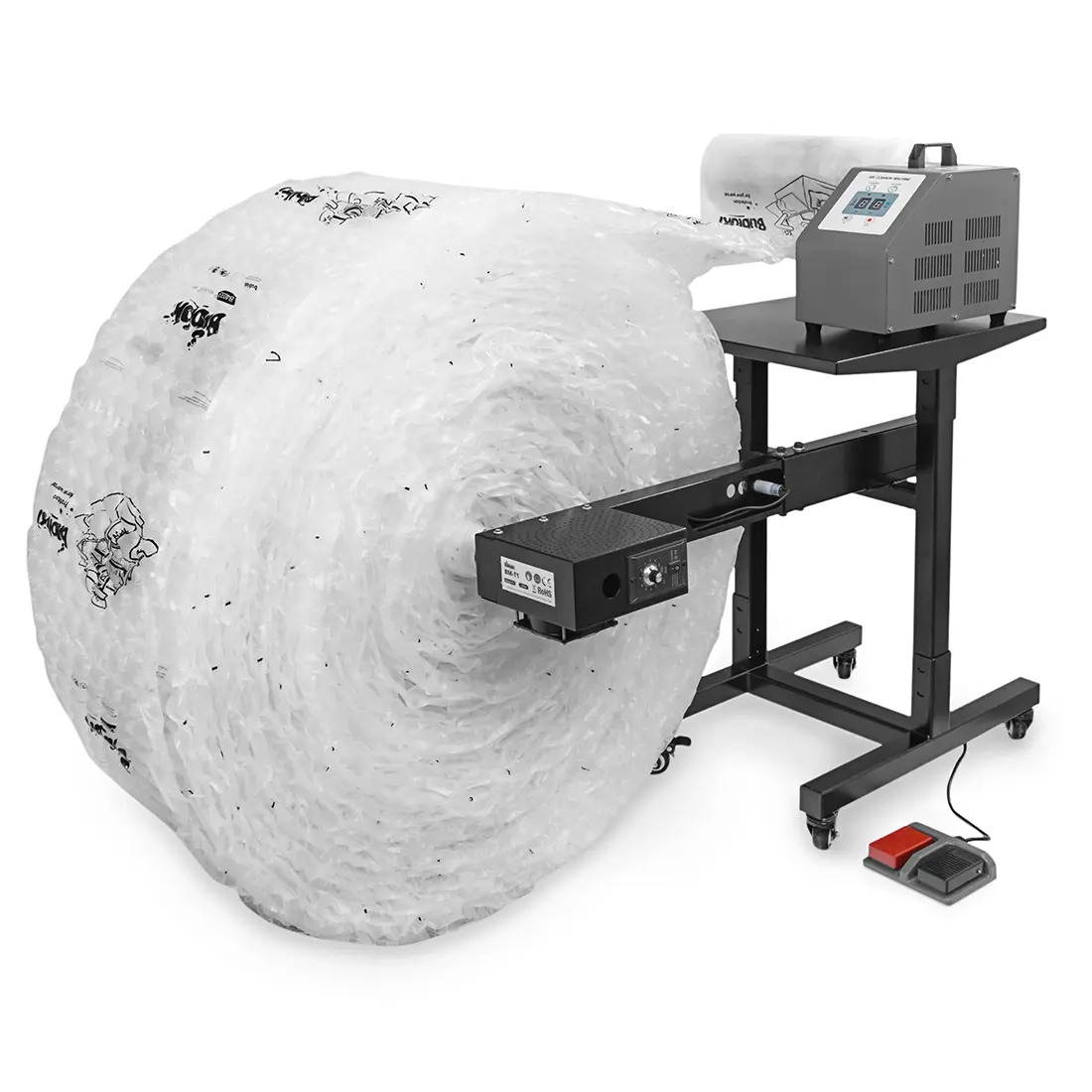 Stół z nawijarką to wygodne rozwiązanie do produkcji wypełniaczy do paczek. Ustaw na stole na dogodnej wysokości maszynę Bublaki BM-A2T lub BM-A3T-BC, uruchom nawijarkę i wyprodukuj wypełniacze na "zapas". Bublaki BM-T1 posiada kółka z hamulcami, dzięki którym w łatwy sposób zmienisz miejsce stacjonowania Twojej produkcji.