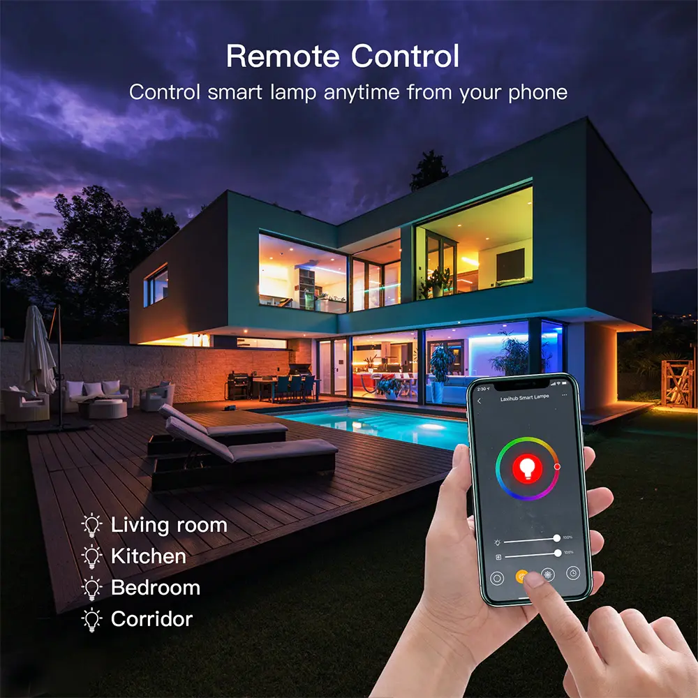 Inteligentna lampa WiFi sterowana przez aplikację- Dzięki aplikacji "Tuya" lub "Smart Life" możesz sterować oświetleniem z dowolnego miejsca i o każdej porze. Nie wymaga bramki, a jedynie WiFi 2,4 GHz.