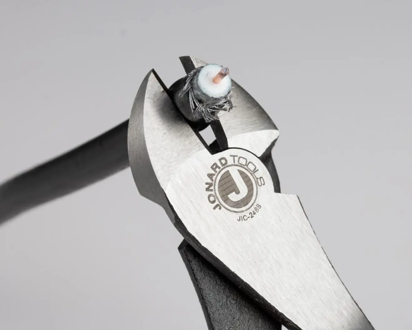 - JIC-2288 Szczypce do cięcia ukośnego po przekątnej, o dużej dźwigni, 8" są wykonane z polerowanej stali chromowo-wanadowej i poddane obróbce cieplnej w celu uzyskania maksymalnej wytrzymałości i trwałości.