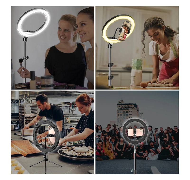 Lampa ring LED Apexel idealnie nada się podczas robienia makijażu, w studio fotograficznym, filmowym, a także podczas czytania lub pracy przy biurku.