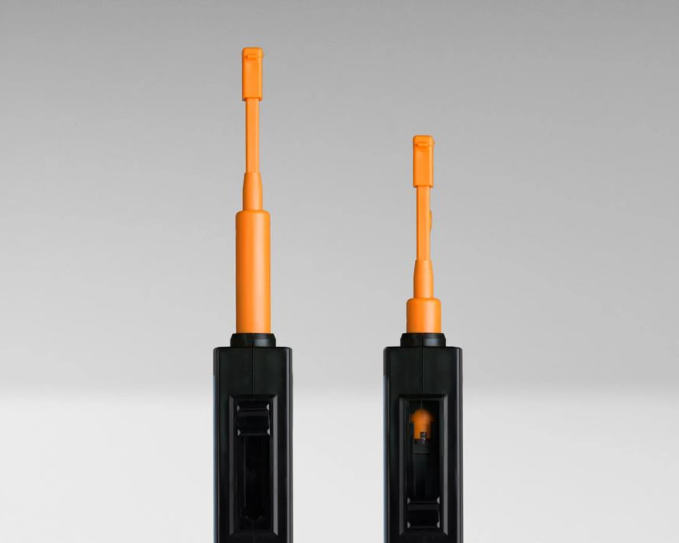- Podwójna obrotowa końcówka i obsługa jednym naciśnięciem sprawiają, że czyszczenie powierzchni czołowych ferruli jest szybkie i łatwe
