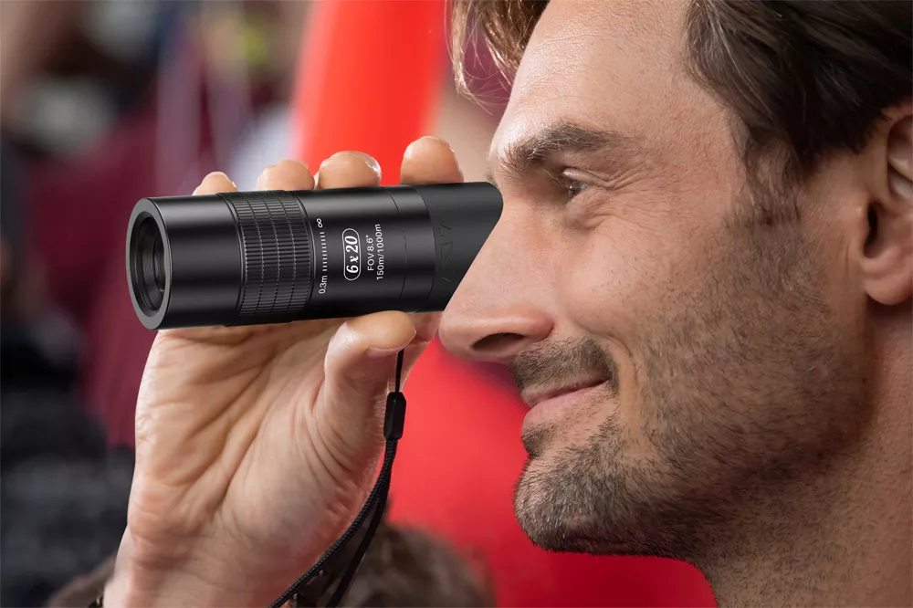 - Odległość hiperfokalna od 0,3 m do nieskończoności- Odległość ogniskowania monokularu jest tak krótka, że może on działać jak lupa np. do obserwacji owadów. Jest to idealny wybór na wystawy, koncerty, wędrówki, biwakowanie, obserwowanie ptaków itp.