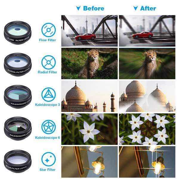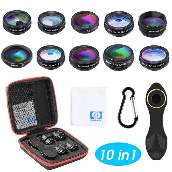 Zestaw 10 obiektywów i filtrów do telefonu + etui APL-DG10