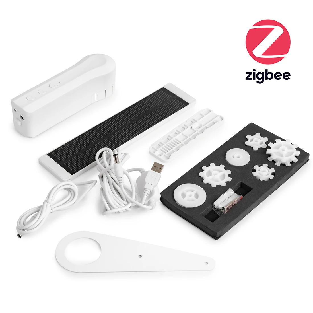 Służy do regulacji położenia rolet za pomocą protokołu Zigbee, który może łączyć się z wieloma różnymi aplikacjami zarządzającymi całym inteligentnym domem. Aplikacje takie jak np. Tuya jest darmowa, a wszystkimi urządzeniami można sterować z dowolnego zakątka świata. Sterowanie żaluzjami jest możliwe również za pomocą przycisków na silniku lub za pomocą pilota (dostępny w sprzedaży osobno).