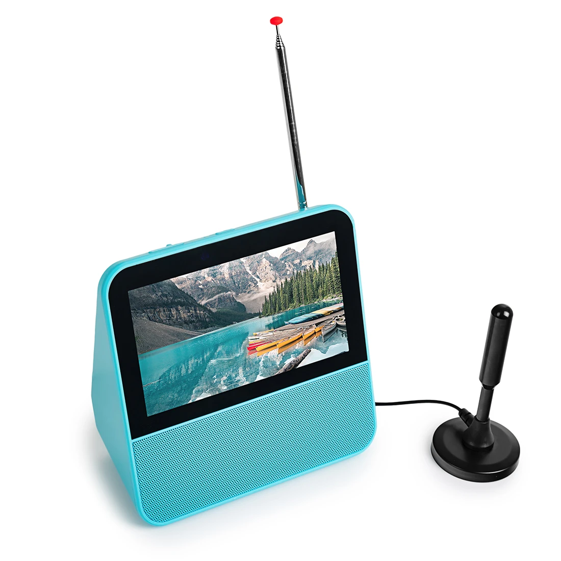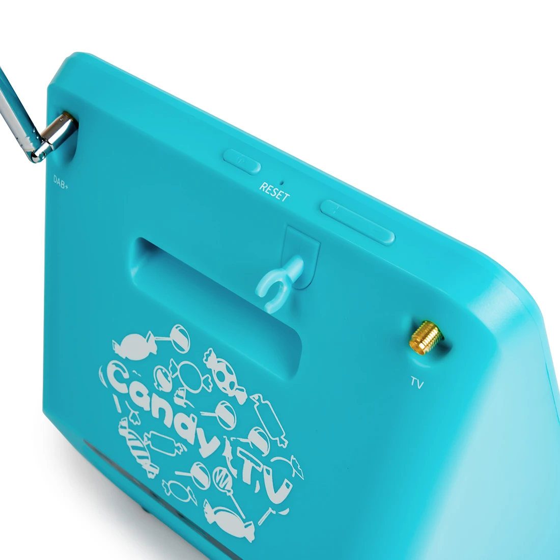 Mini przenośny telewizor DVB-T2 z wbudowaną baterią w kolorze turkusowym