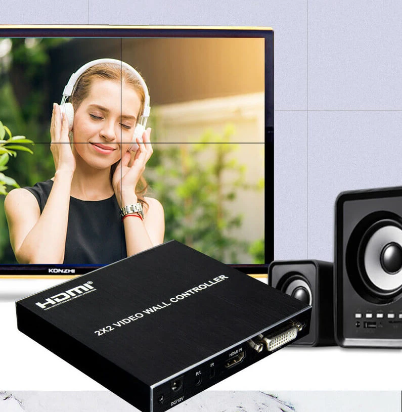Jeśli masz cztery telewizory i chcesz je wykorzystać, by stworzyć ścianę, która będzie wyglądać jak jeden duży ekran, istnieje na to sposób. Wystarczy podłączyć źródło video do naszego kontrolera ścian, następnie do maksymalnie 4 odbiorników HDMI. Radzimy upewnić się, że telewizory mają takie same lub bardzo podobne rozmiary. W przeciwnym razie ściana będzie wyglądała nieestetycznie. Pamiętaj, aby dopasować kolorystykę telewizorów. Najlepiej jest używać telewizorów o tych samych parametrach technicznych, takich jak rozdzielczość i jasność.Telewizory powinny być umieszczone w taki sposób, aby ich krawędzie były równoległe do siebie