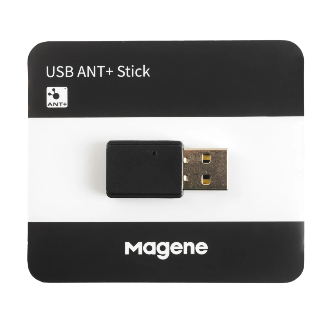 - Antena USB ANT+ marki Magene, najnowsza zminimalizowana wersja tego urządzenia (stara wersja jest większa i ma białe logo)