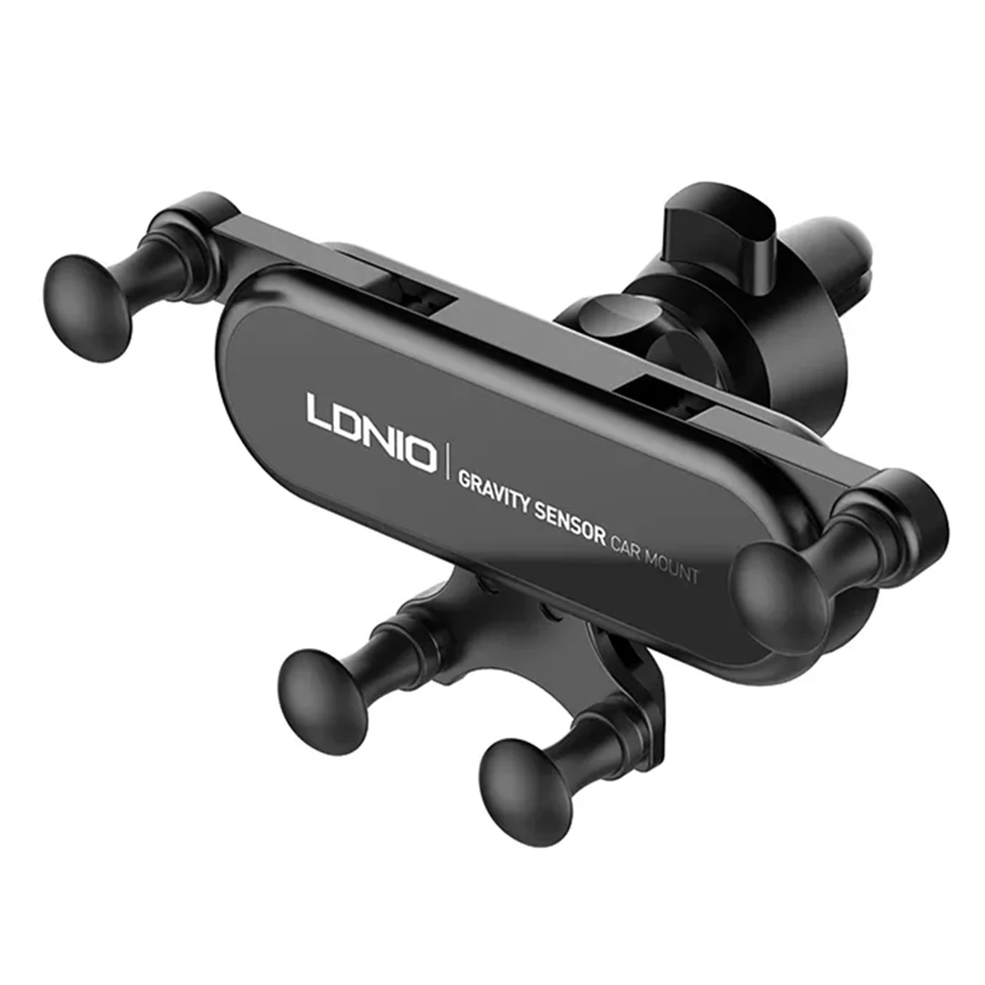 Uchwyt telefonu LDNIO MG03 to urządzenie, które umożliwia bezpieczny montaż smartphona. Uniwersalny uchwyt pasuje do większości popularnych modeli telefonów. Wytrzymałe ramiona zaciskają się na telefonie, co zabezpiecza go przed wypadnięciem. Uchwyt montowany jest na klips do kratki nawiewu.Solidny uchwyt smartfona