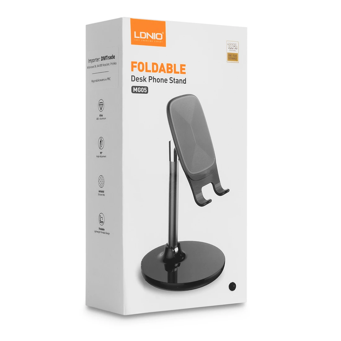 Stojak do telefonu LDNIO MG05 to urządzenie, które umożliwia wygodne ustawienie smartphona np. na stole. Uniwersalna podstawka pasuje do większości popularnych modeli telefonów. Konstrukcja jest metalowa i dodatkowo dociążona dzięki czemu zachowuje stabilność. Podstawka smartfona najważniejsze cechy