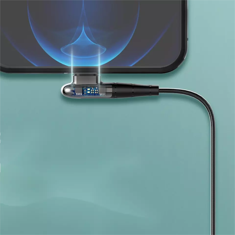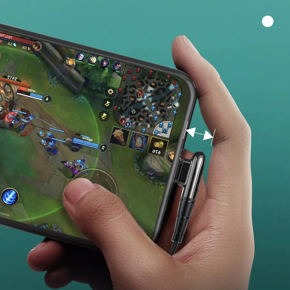 Kabel USB został zaprojektowany tak, aby wygodnie trzymać telefon w pozycji poziomej np. podczas gier mobilnych. Końcówka kątowa 90 stopni nie będzie przeszkadzać podczas korzystania z smartphone'a.