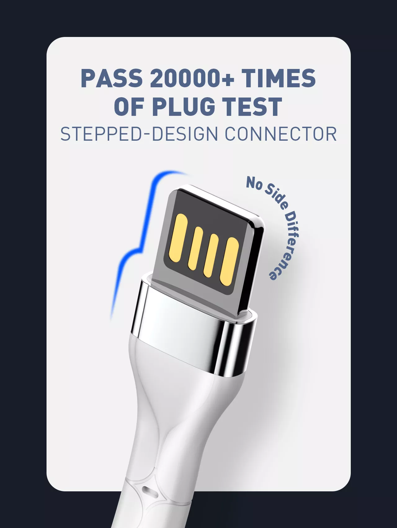 Kabel USB został poddany testom, które udowodniły, że wielokrotne wpinanie i wypinanie końcówek kabla nie jest straszne produktom LDNIO. Kabel przeszedł test, który polegał na podłączeniu kabla do urządzeń 20000 razy. To stanowczo cecha, która ten produkt wskazuje jako jeden z najlepszych na rynku - możesz zapomnieć o łamiących się i wygiętych końcówkach, które uniemożliwiają podłączenie urządzenia, skutkujące ponownym zakupem nowego kabla USB.
