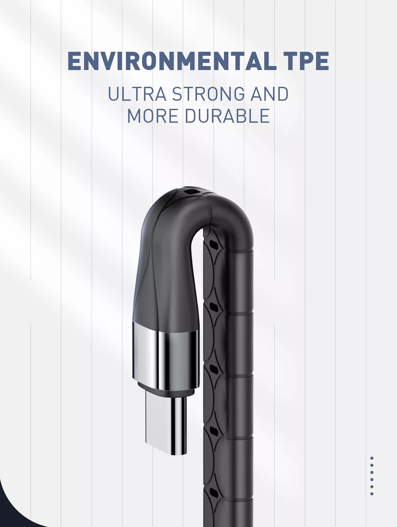 Kable USB LDNIO są odporne na zużycie, gięcie i dodatkowo są wykonane z niepalnego materiału. Zapobiega to szybkiemu złamaniu się kabla, tak jak to ma często miejsce w przypadku innych kabli. Oplot kabla jest stworzony z warstwy TPE (termoplastyczny elastomer poliestrowy), który jest odporny na temperatury i chemię, a także umożliwia bezodpadowe przetwarzanie, co jest ważne dla środowiska - z powodzeniem zastępuje gumę czy lateks. Wykonany z kabli miedzianych i izolacji z elastycznych materiałów.