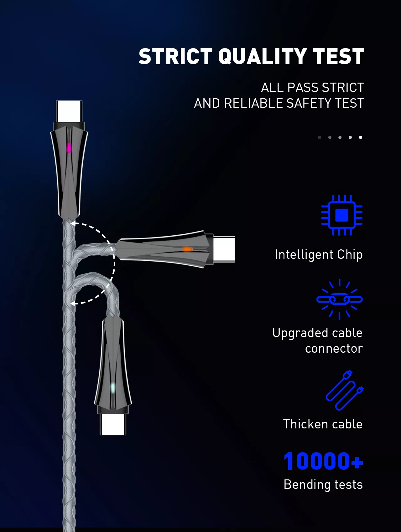 Kabel USB został poddany testom, które udowodniły, że wielokrotne wpinanie i wypinanie końcówek kabla nie jest straszne produktom LDNIO. Kabel przeszedł test, który polegał na podłączeniu kabla do urządzeń 10000 razy. To stanowczo cecha, która ten produkt wskazuje jako jeden z najlepszych na rynku - możesz zapomnieć o łamiących się i wygiętych końcówkach, które uniemożliwiają podłączenie urządzenia, skutkujące ponownym zakupem nowego kabla USB.