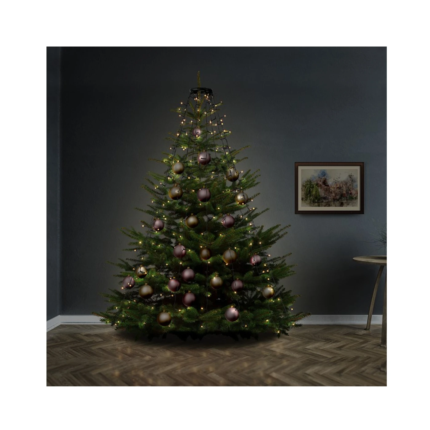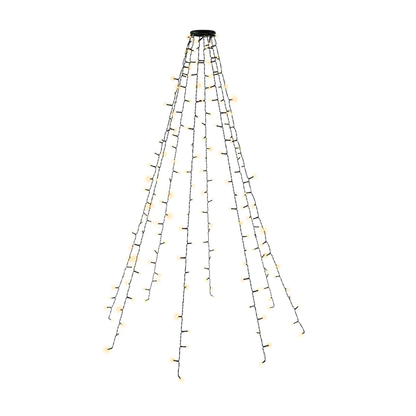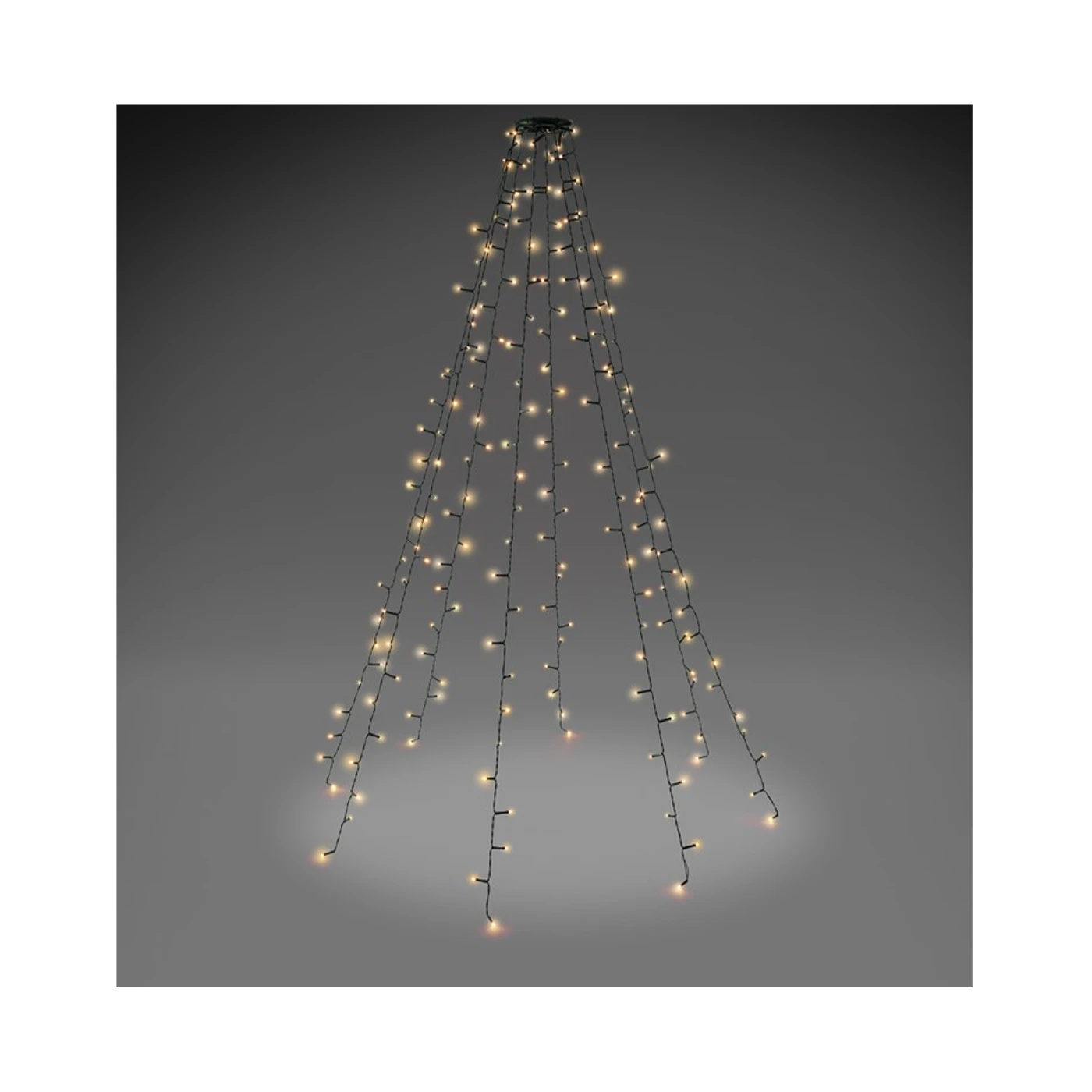 Lampki choinkowe, łańcuch świetlny na choinkę z pierścieniem 200 LED z wyłącznikiem czasowym i funkcją pamięci. Łańcuch posiada 8 trybów świecenia, transformator zewnętrzny 24 V, temperatura barwowa ciepła (3000 K), do użytku wewnątrz i na zewnątrz (IP44).
