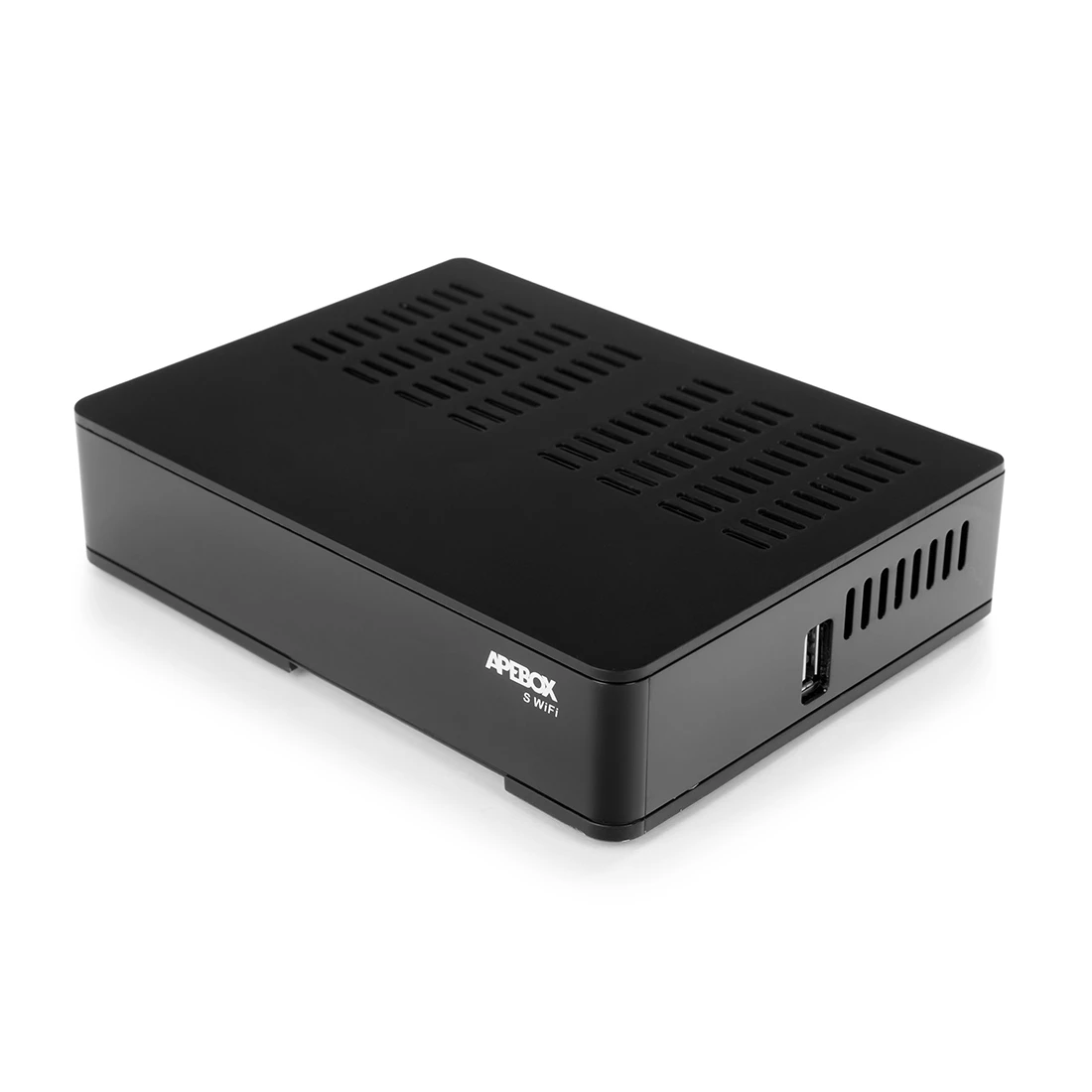 Odbiornik satelitarny APEBOX S WIFI Full HD z czytnikiem kart (CA)Tuner DVB-S2 o wysokiej rozdzielczości Full HD 1080p H.264, z czytnikiem kart (CA) i zintegrowaną łącznością WiFi. Płynne uruchamianie oraz ładny i prosty interfejs użytkownika, dla bardzo prostej konfiguracji i użytkowania. Zawiera aplikacje multimedialne WebTV i YouTube.