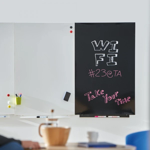 Czarna tablica suchościeralna to tablica, którą możesz wykorzystać w wielu sytuacjach. Bezramkowa i z mocowaniem na magnes — tak, aby łatwo można było ją przewiesić lub zmienić na inną. Poznaj trwałe tablice magnetyczne z Serii X.