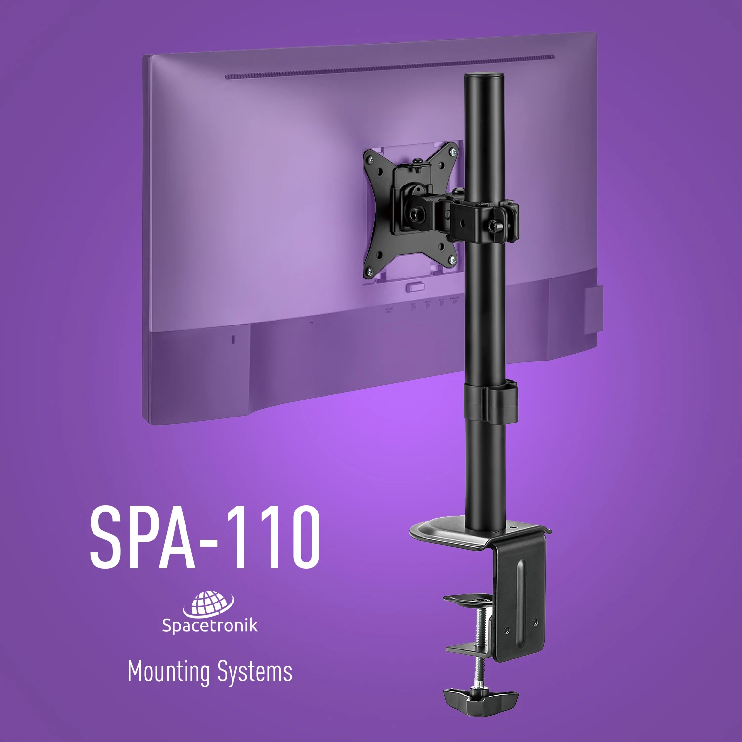 Dzięki wytrzymałej stalowej konstrukcji model SPA-110 zapewnia stabilny uchwyt dla pojedynczego monitora o przekątnej od 17 do 32 cali i wadze do 9 kg.