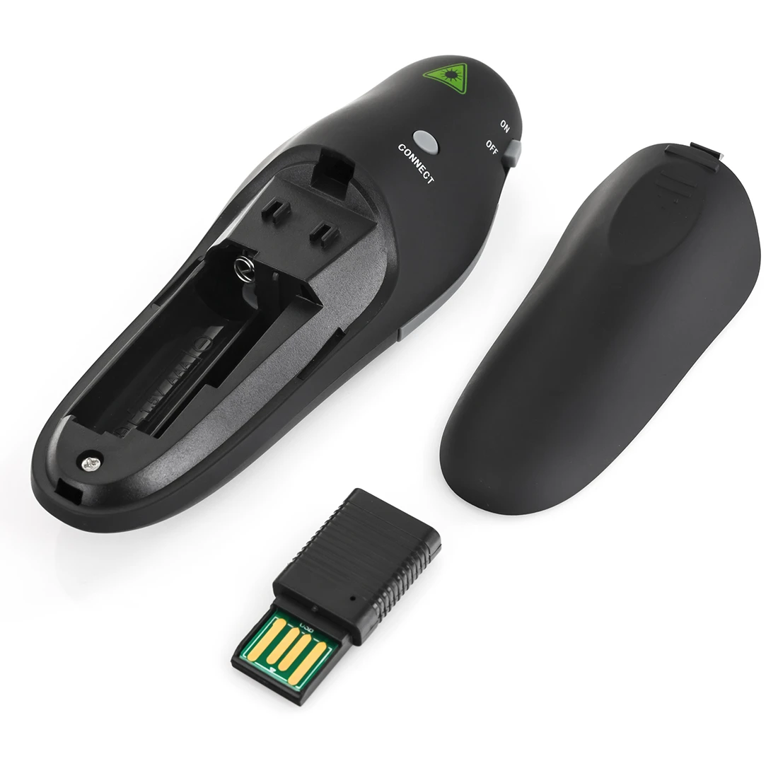 Odbiornik dołączony do pilota działa w częstotliwości 2.4GHz. Urządzenie działa na zasadzie plug & play i nie wymaga instalacji żadnych dodatkowych sterowników. Wystarczy nacisnąć przycisk połączenia na tyle obudowy, aby sparować. Wskaźnik jest kompatybilny z Windows 2003, XP, Vista, 7, 8, 10, Mac OS, Linux i obsługuje takie programy jak Keynote, Google Slides, MS Word, Excel, PowerPoint, Website, PDF