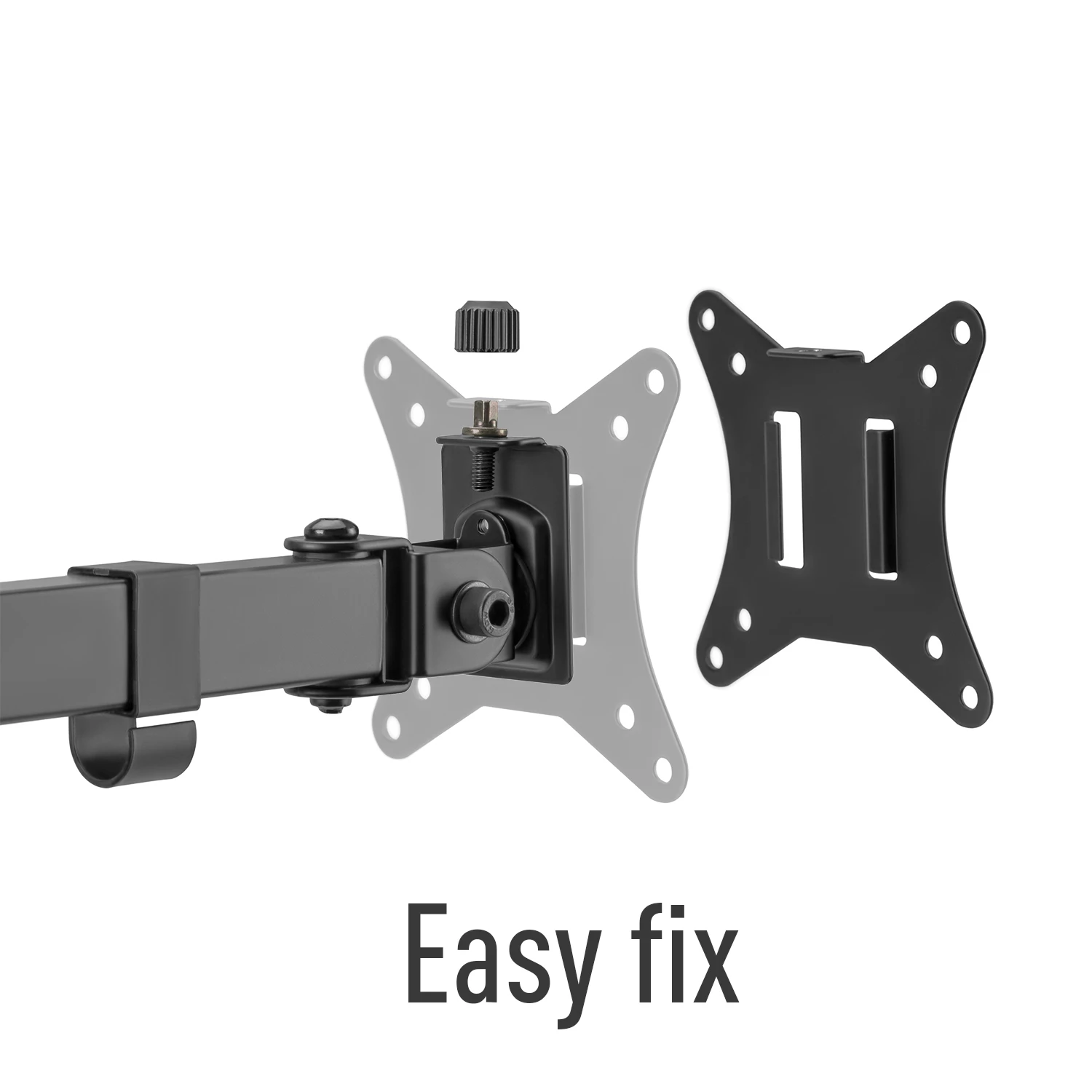 Dzięki wytrzymałej stalowej konstrukcji model SPA-120 zapewnia stabilny uchwyt dla dwóch monitorów o przekątnej od 17 do 32 cali każdy i wadze do 9 kg.